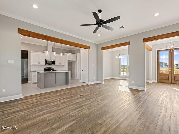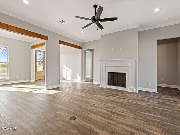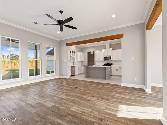 *Receive up to $7,465 in Incentives on this MOVE IN READY New Construction Energy Star home in Atchafalaya Trace Phase III! The Angelle Heritage floorplan has 4 bedrooms with 3 full baths. Wood beam lintels are featured at main area openings. The living room has a ventless gas fireplace. Kitchen includes a freestanding gas range with stainless appliances, island, 3cm granite countertops. Custom built cabinets with pot drawers and a trash pull along with soft close hinge and slides. Vinyl plank and tile flooring throughout the home. Master bath has a custom tile shower with a fiberglass base. Exterior of the home includes additional concrete on back patio with an exterior fan, landscaping at the front of the home and up to 10 pallets of sod.