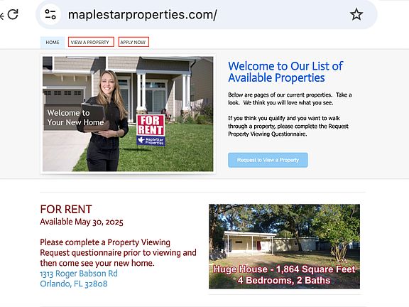 OPEN HOUSE: Sunday, June 15th from 2 pm - 6 pm Spacious 4 bedroom, 2 full bath block home available for immediate occupancy. Open concept with 1,884 square feet under air (2,364 total), very clean, all new appliances, double car carport, brand new roof, freshly painted inside and out with a large back patio as the center of a large fenced in back yard. There's plenty of space for everyone! Come see for yourself: OPEN HOUSE: Sunday, June 15th from 2 pm - 6 pm. Walk in the front door and see the open kitchen with large pantry and new stainless steel appliances, including a dishwasher and large dining area. There are two living areas spread out before you - a front living room and a rear family room so plenty of space to relax. You can also relax in your tub if you're the soaking type. The two full-bathrooms include one shower/tub combo and one large shower. You have an incredible amount of storage here. Large bedroom closets (including two walk-in), a hall closet and extra storage space in the laundry room! While we're talking about laundry, hookups are ready for your washer and dryer inside, under air not in a hot, dirty garage! The home is tiled throughout making it easy to keep clean. You will also enjoy a large, fenced-in back yard as well as a rear patio accessible from the dining room and one of the bedrooms. Recent yard and tree clean-up has beat up the front yard a bit, but this this temporary. If you like a nice clean home, this is a great place. If you do not like keeping your home clean, this is not the place for you. Come see for yourself! OPEN HOUSE: Sunday, June 15th from 2 pm - 6 pm You should have a combined household income of at least $6,100 (3 times the rent). If this is you, we'd love to meet you! Please complete a Property View Request at MapleStar Properties dot com and then come see your new home! Or if you already know you're ready to apply, you can do so using the APPLY NOW link. Parking: covered 2-car carport, large driveway and street parking. Access to major roads: West Colonial, 408, I-4, John Young Parkway, Florida Turnpike. Minutes from downtown. Come see it for yourself. Complete a Property View Request at MapleStar Properties dot com and then come see your new home. For qualified tenants, we have options if you need assistance with the security deposit. 12 months minimum.