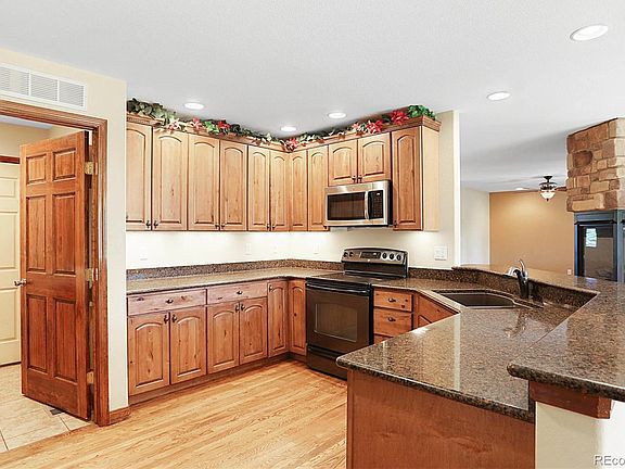 Main level master bedroom with no-stair entry from garage. The kitchen features granite slab counters, alder cabinets, under-cabinet lighting, hardwood floors in the kitchen, a 6x6 walk-in pantry and a beautiful chandelier at the dining area. The kitchen walks out to a large, partially covered deck that includes a shaded space as well as a large sunny space that overlooks the backyard. The master bedroom suite has a double door entry and enjoys a peaceful view of the backyard. There is a closet in the bedroom area as well as a walk-in closet in the bathroom. Raised vanities, jetted tub, tile flooring and a separate shower provide a luxuriously appointed bath. The walkout basement has a substantial family room with 6x7 wet bar and three more bedrooms. Two bedrooms share a full bath that has pocket door entries and a pocket door divider between the tub and vanities. Both bedrooms enjoy easterly sun from garden-level windows. Black-framed Pella Vinyl Windows, Solid Wood Doors and oil-rubbed bronze bath fixtures and lights give the home a timeless mountain appearance to last the generations.