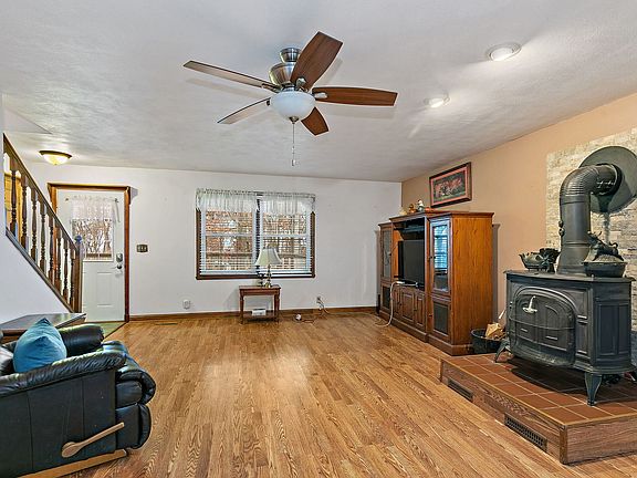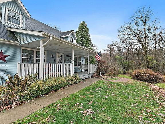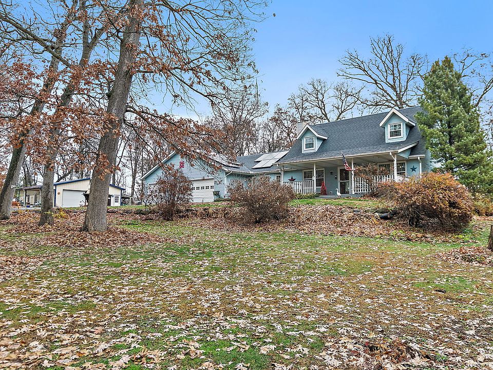 Who says gravel roads don't exists anymore? From the moment you arrive, this property welcomes you with charm, privacy, and space to breathe. The gravel approach leads to a long asphalt driveway and a beautifully maintained Cape Cod home sitting proudly on nine peaceful acres surrounded by nature. There's plenty here for hobbies, storage, or outdoor living with two large outbuildings, an additional storage shed, mature trees, open space, and trails ready for hiking, ATVs, or simply enjoying the quiet. The inviting covered front porch sets the tone before stepping inside to a tiled foyer that flows into a spacious family room. A separate dining area opens into a bright three-season room with beautiful views of the backyard and the large composite deck. The updated kitchen is a highlight with a large center island, double oven, stainless steel refrigerator, cooktop, Bosch dishwasher, and a charming window seat with built-in storage. Just off the kitchen, you'll find a mudroom and dedicated laundry room with easy access to the oversized three-car garage. An additional extra-deep single garage bay adds even more workspace and includes plumbing, a stainless steel sink, heat, and power. The first-floor master suite offers an impressive amount of space and features a beautifully updated private bathroom with a standalone soaking tub, a large open walk-in shower with a bench, and a generous walk-in closet. An updated half bath completes the main level. Upstairs are two additional bedrooms connected by an updated Jack-and-Jill bathroom. The walkout basement offers both finished and unfinished space, making it perfect for storage, expansion, or recreation. The finished lower area includes a updated full bath and sliding doors leading directly to the in-ground pool and brick paver patio. Mechanical systems and storage are located on the unfinished side. The home also includes a solar panel system that will remain with the property. Home is an estate sale and being sold as-is.