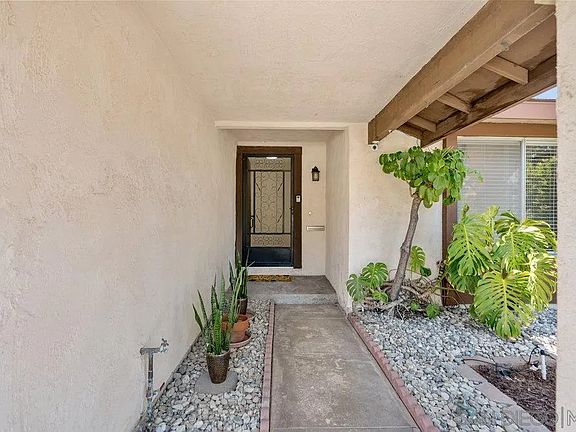 Great opportunity to live at the end of a cul de sac street in a great part of Rancho Penasquitos! This charming 3 bedroom, 2 bathroom single level house sits on a flat, fully fenced, private lot. Terrific floor plan with vaulted ceiling and fireplace in the living room that is adjacent to kitchen and dining areas. Off the living room is a newer dual pane glass slider that leads out to a large patio that is perfect for entertaining. Home features newer luxury vinyl plank flooring throughout and clean, neutral interior paint. Secluded back yard feels like your own sanctuary. The same owner lovingly cared for this home for almost 50 years and it shows. Great location is close to everything and feeds to top rated Poway Unified Schools, including Canyon View Elementary, Mesa Verde Middle and Westview High. No HOA & no Mello Roos!