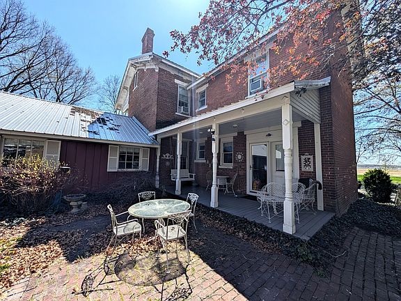 Nestled in the serene countryside of South Central Indiana, this charming farmhouse offers a perfect blend of historic character and modern comfort. Built in 1865, this spacious 4-bedroom, 2-bathroom home spans an impressive 4,081 square feet, plus an unfinished basement providing ample room for family living and entertaining. The property boasts a picturesque setting on approximately 5 acres of land to enjoy the tranquility of rural life. The home features a classic farmhouse design with a two-story layout, central warm air heating, and a variety of inviting spaces, including a dining room and family room. Outdoor enthusiasts will appreciate the multiple open-frame porches, a brick patio, and additional structures such as 3 barns (62x32 pole barn, a 26x18 barn and a 38x28 barn with large lean-tos attached (measurements are approximate). The expansive lawn features many flower gardens with a collection of 20+ Hosta varieties. If you're looking for a peaceful retreat this property offers endless possibilities. Don't miss the chance to own a piece of Indiana's history with this unique and versatile home.