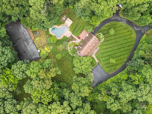 Welcome to a truly unique retreat tucked away on a totally private 7.68 acres, beautifully landscaped lot. ***Dive into the sparkling salt water system inground pool or just soak up the sun on the surrounding patio*** Practice your serve on the tennis court, host picnics beneath the trees, or take a quiet walk around the peaceful grounds.***Step inside to discover reclaimed wood floors that add warmth and character, and a freshly painted interior for a refreshed feel throughout*** The kitchen has been tastefully remodeled with white cabinets, granite counters, large island, Stainless steel Five Star gas cooktop, Kitchen Aid double ovens and Bosch dishwasher to impress both the casual cook and the dining enthusiast. The great room off the kitchen features a amazing stone fireplace and is ideal for entertaining or family get-togethers. The main level also has a multi-purpose room which can be used as a bedroom, office, study etc, with a remodeled full bath. The upper level features a wonderful primary bedroom with a exquisitely remodeled ensuite bath. Plus two additional bedrooms one with a walk-in closet and a wonderful remodeled hall bath. The large storage shed provides additional space for all your gardening needs and your very own chicken coop. The long tree-lined & paved driveway provides plenty of room for guest parking. This mint-condition home blends modern upgrades with serene outdoor living, offering space and privacy. Additional features: New HVAC 2023, Pool main pump & filter were replaced 2024, Well pump & irrigation system 2020. Fully automated irrigation system for front, back, side and pool yards. Septic pumped May 2025. Don't hesitate on this great opportunity to own this amazing home.