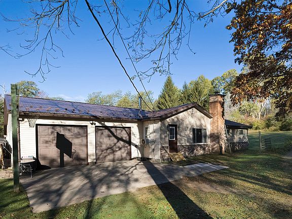 Rustic 3-bedroom, 1.5 bathroom ranch home on 1.2 acres. Features include hardwood floors, a 2-car attached garage and a 12 x 16 storage shed. Quiet, private setting with convenient access to town amenities. Ideal for buyers seeking single-floor living in a peaceful location. Property has room for potential home expansion or outbuildings. Survey recently done. Well and furnace 2019. Block foundation redone 2007.