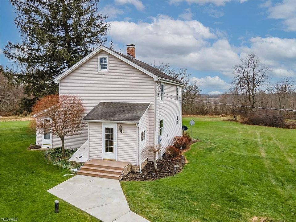 2-3 Bedroom Farmhouse on 21.43 acres in New Springfield. The main level of this updated home includes an eat in kitchen, spacious living room, formal dining room, laundry room, and full bath. Two bedrooms and a bonus room comprise the second level. A full attic provides ample storage. Exterior features include an enclosed entryway, a vintage summer kitchen in need of some TLC, and a 30 x 40 outbuilding with 3 garage bays and electric. Enjoy the peace and nature of this meticulously maintained home which is positioned approximately 1200 feet from the road. Call Today!!