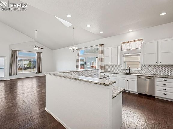 Welcome to Your Dream Home! Step into this beautifully updated home featuring an open concept perfect for modern living and entertaining. Soaring vaulted ceilings and abundant natural light create a an inviting atmosphere the moment you walk through the door. The main level primary bedroom offers convenience and comfort—and you'll wake up every morning to stunning views of Pikes Peak right from your window. Step out onto the deck and take in the same breathtaking mountain backdrop, perfect for relaxing with your morning coffee or hosting evening get-togethers. Need a dedicated workspace? You'll love the versatile office space, ideal for remote work, studying, or creative projects either in the main level office space, or upstairs loft. Downstairs, a fully finished walk-out basement provides even more room to relax or entertain, with seamless indoor-outdoor flow to enjoy the yard or patio. Freshly painted and featuring new carpet throughout, this home is truly move-in ready! Located just minutes from schools, parks, and a golf course, it’s the perfect blend of comfort, convenience, and Colorado beauty. Don't miss your chance to own this incredible home—schedule your private tour today!