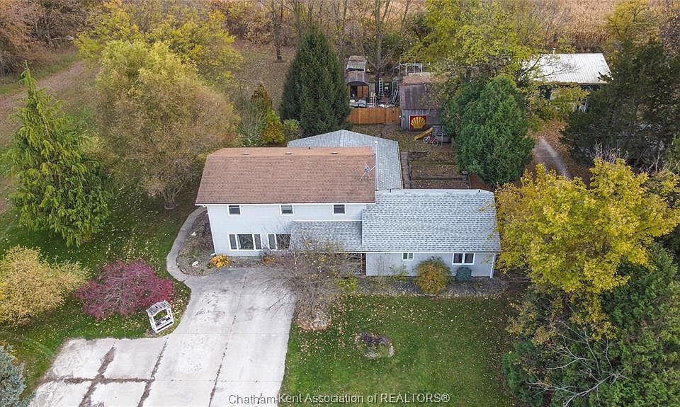 Welcome to your serene rural escape at 13136 Evergreen Line, situated on a beautiful 1.285-acre treed lot just outside Thamesville. This exceptional family home boasts 4 bedrooms and 3 full bathrooms, offering ample space and comfort. The heart of the home is the spacious kitchen, featuring a functional island and designed with plenty of seating for family gatherings and entertaining. The adjacent main-level living room is warm and inviting, anchored by a cozy gas fireplace. The luxurious second-floor primary suite is a true sanctuary, complete with a large walk-in closet, a 3-piece ensuite, and patio doors leading to a private balcony—a perfect spot to enjoy your morning coffee. Outdoor entertaining is a dream on the spectacular large covered porch, which features its own natural gas fireplace for year-round enjoyment. The property benefits from the convenience of municipal water and natural gas service. Adding significant value is the huge workshop/barn, providing incredible potential for equipment storage, hobbies, or a home-based business. This property seamlessly blends country privacy with modern amenities and functionality; book your showing today to experience this unique lifestyle opportunity! Seller is related to listing agent.