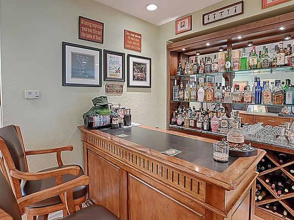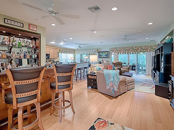 WOW is what you will say as you drive up to this one of a kind Elkridge, 3 bedroom 2 bath home. The landscaping and hacienda walls are just the beginning. Walk through the leaded glass entry way on to bamboo flooring, and you will see the beautiful oasis behind this fabulous and well decorated home. With luxurious granite counters to the stainless contour sink, the tall maple cabinets with double roll-outs will say this is the kind of kitchen I have always wanted. Recessed lighting is everywhere along with surround sound. All bedrooms have engineered wood flooring and all closets have built in closet systems. En suite has granite custom counter as does the guest bath. WAIT, there is more to come like a glass enclosed lanai that is not a stepdown, and of course it is climate controlled. This lanai has a remote controlled awning and overlooks the oasis that has a pavered patio for more enjoyment. Besides what is mentioned here, the garage with a utility sink and drop down stairs, is extended 4 feet, the hacienda wall continues around the entire home, and there well for irrigation. All windows are Low E Glass.This is one you need to see TODAY. Like I say, it is one of a kind. Most furniture is available.