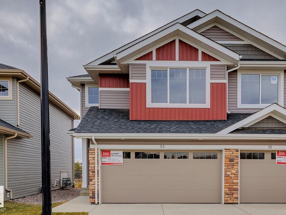Welcome to Skylark 87 located just minutes south of St. Albert. Trumpeter on Big Lake is taking flight with over 300 acres of rolling hills, mature woodlands and natural wetlands. Trumpeter is home to a wide variety of wildlife, over 220 bird species, and now you can make this exceptional location your home too. This exceptional 2 storey townhome features quality finishing throughout including quartz counter tops, vinyl plank flooring, ceramic tile backsplash, ceramic tile floors, stainless appliances, and so much more. The open concept main floor features the kitchen, the dining room, and the living room all open to each other. The upper floor features a generous master w/walk in closet and 4 piece ensuite, 2 additional bedrooms, a second upper floor 4 piece bath, THE BONUS ROOM, & the laundry room. This unit features a DOUBLE ATTACHED GARAGE and a unfinished basement. Enjoy summer days on your spacious rear deck. At this price, what are you waiting for? Come take a peak.