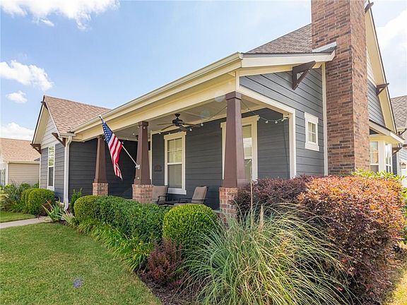 Make this Craftsman-style home with fenced yard in desirable Hyde Park S/D your new residence! The large front porch & tapered columns are signature design elements adding to the charm & curb appeal. Vaulted ceiling in living room w/ exposed cedar beams & wood accent wall are attractive architectural details. An open-concept floor plan w/ master and second bedroom on main level features gorgeous wood flooring, granite counter tops & new subway tile backsplash in kitchen (2020). Upgraded modern lighting has been installed in the dining space. Master bath has been updated with new tile (2018). Bedrooms 3 & 4 & 3rd full bath are up as well as a large bonus/flex room. New carpet throughout & paint in the perfect gray is fresh & modern. Exterior: the roof has been replaced (2020). Siding in back of home has been replaced. Neighborhood amenities include community pool, pavilion & playground. Award-winning Bentonville school district & just minutes from Pinnacle Promenade Mall, Crystal Bridges, Walmart HQ, & I-49 access.