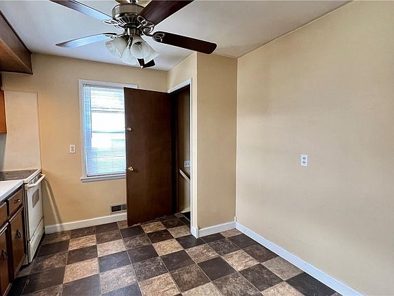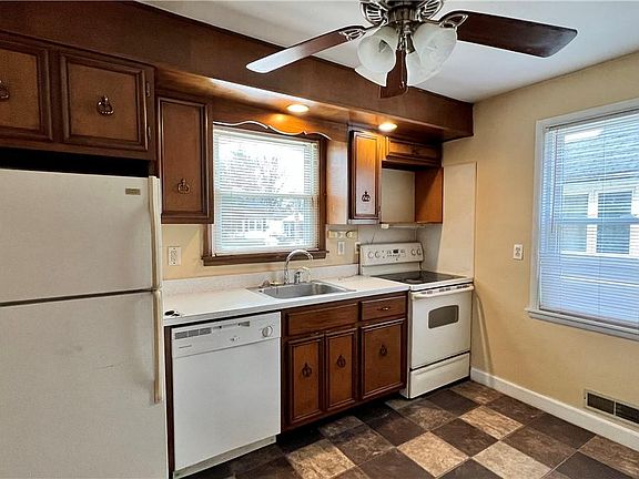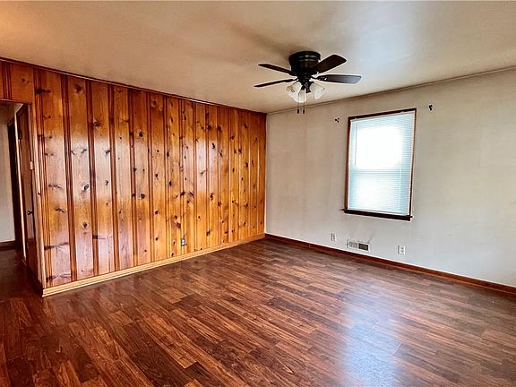 Cute 2 Bedroom, 1 Bathroom Bungalow with great curb appeal. The Living Room offers a unique Knotty Pine wall. Eat-in Kitchen includes all appliances. Bedrooms have large closets. The Walk-in hallway closet offers a great place for storage. Replacement windows. The Full Basement is a great additional space with storage shelving and tile floors. Detached 2 Car Garage has an attached Deck-which would be a great area for outdoor entertaining. Vinyl-sided for a maintenance-free exterior.