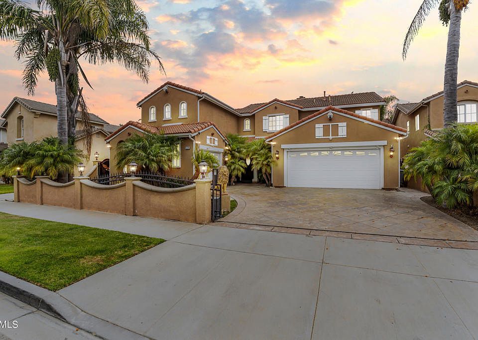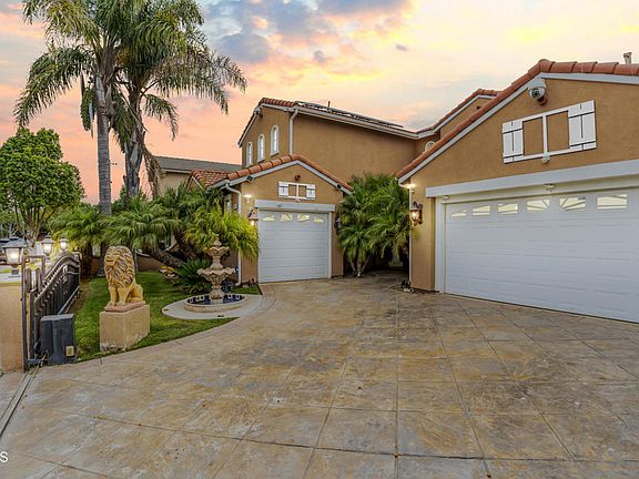 This charming North Oxnard property boasts a classic design with 2,868 sq. ft. of living space. As you approach this spacious home you will notice the large driveway with beautiful stamped concrete, manicured landscape with multiple palm trees, and Lion guarded gates that welcome you. Open the doors to reveal an open concept home that offers a stunning living room with double-height ceilings, tile flooring, and neutral paint tone throughout. Enjoy hosting events in the dining area and elegant kitchen with white cabinets, granite countertops, large island, dual basin sink, and large pantry. On this level you will also find a versatile room perfect for use as an office or study area and a bedroom that can accommodate guest and loved ones. On the second level an expansive master suite awaits featuring a multitude of windows, plush carpet and a luxurious full bath with jetted tub, separate walk-in shower, his-and-hers sinks, and two walk-in closets. Additionally, a loft area and two more generously sized bedroom that share a full bathroom perfect for the whole family. The large backyard is perfect for family gatherings and hosting events with the large gazebo. The 2-car garage currently being used as an additional entertaining space could be the perfect man cave. Located minutes away from Pacifica High School, junior high, parks, shopping centers and much more! Hurry, this one will not last!