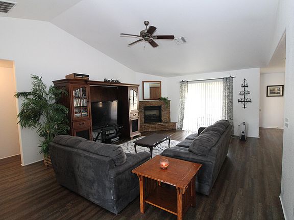 Well cared for home in desirable neighborhood is ready to be yours! You will feel welcomed as you step into this open split floor plan home. The spacious entry will lead you into the living room that features a vaulted ceiling, gas fireplace, and sliding glass door that opens up to the back covered patio. Just off the living room is the connected kitchen and dining room that offers plenty of space for cooking and entertaining. The master suite includes his/her closets, jetted tub, step in shower, single sink with vanity area, and separate water closet. Both of the guest bedrooms also have his/her closets and share a full bathroom with a shower/tub combo. Recently painted exterior and newer laminate/carpet floors installed. This home has a good amount of parking between the garage, driveway, and street. Only minutes from shopping, medical services, parks, and dining. Be sure to schedule your tour before its gone!