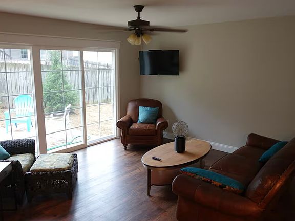 Fully furnished 3 bedroom and 1.5 bath house. House comes with one car garage. One level no steps. House is located near trails and across the street from junior high and walking distance to elementary school and middle school. House has fenced yard and shaded rock patio area. House has been updated with full walk in tile shower bath on main bath. Houses comes with washer and dryer and all kitchen appliances. House is located close to Crystal Bridges and less than a mile from downtown. Owner lives near property.