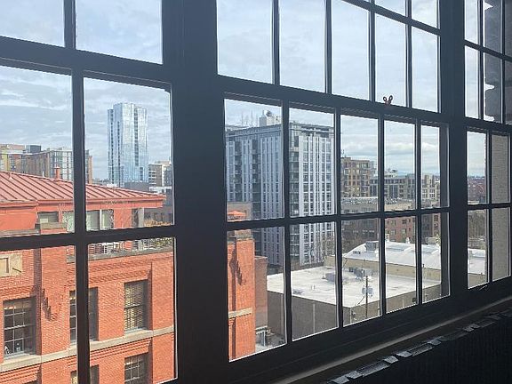 Pearl District Charming 7th Floor Loft, quiet living with a ton of options for a creative renter. Large open space allows for a great array of options to create the perfect living space. This building is also a work/live property. High ceiling 14ft - wall of windows - new blinds - two ceiling fans - new portable air conditioner unit. 711 comes with all kitchen appliances, compact dishwasher, full size fridge, stove and self contained washer and dryer in the kitchen area. Moveable kitchen island with 4 bar stools. Fresh paint, great neighbors on our floor. Parking space in secure garage perfect for a compact car. Secured private storage unit included in the rent. Shared roof top entertainment area, grills along with plenty of tables, chairs and loungers.