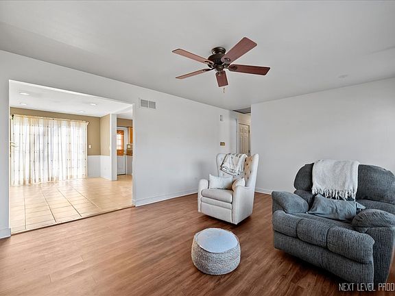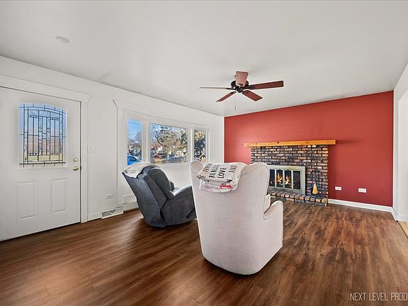 You couldn't ask for a better location! This amazing west side ranch is located across from Aurora University and just a block from Prisco's market! This well cared for 3 bedroom 2 bath home is move-in ready and offers a full finished basement too! The big living room has wood laminate flooring, a brick fireplace and a big picture window! The fully applianced kitchen offers wood cabinets and has a door that leads out to the deck and large yard. There is an eating space adjacent with sliding glass doors that also lead out to the deck. The primary bedroom has a nice size wall closet with mirrored doors and access to the updated full bath with solid surface countertops, linen cabinet and shower/tub combo. There are 2 more bedrooms with overhead lights and closets. The finished basement offers abundant space for hanging out or entertaining! There is a big built-in bar, flex room, full bath and laundry area with built-in shelving. There is a 2.5 car detached garage and a big yard with deck and built-in firepit too! Don't miss this unique opportunity, make your appointment to see it before it's gone!
