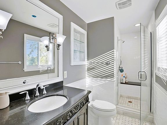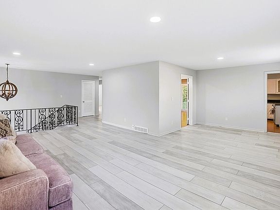 Welcome to this spacious and thoughtfully updated multi-level home combining style, comfort, and function in a highly desirable setting. A welcoming front entry opens to a light-filled living room with wide-plank flooring, neutral finishes, and oversized windows that provide abundant natural light. The open dining area flows into a beautifully refreshed kitchen complete with granite countertops, stainless steel appliances, crisp white cabinetry, breakfast bar seating, and a layout designed for both everyday living and entertaining. All major appliances convey, including the gas range, dishwasher, and refrigerator, ensuring true move-in readiness. Upstairs, the primary suite features hardwood flooring, dual closets, and a private ensuite bath with granite vanity and a walk-in shower. Additional bedrooms offer hardwood floors, ample storage, and neutral tones ready for personalization. A full hall bath includes modern lighting, a granite-style vanity, and a tiled tub/shower combination. Extended living space with a generous family room anchored by a marble-accented fireplace and built-in shelving. A spacious lower-level bedroom with plush carpet and direct patio access offers flexibility for guests, home office, or recreation. Additional updates include a stylish half bath, dedicated laundry/utility area with cabinetry, and a mudroom with built-in hooks and shelving. Outdoors, enjoy a private patio surrounded by mature landscaping, an expansive backyard with open lawn and wooded backdrop, and a trampoline that conveys with the sale for added fun. A two-car garage provides abundant storage and workshop potential. With its versatile floor plan, updated finishes, and included features, this home delivers modern comfort and convenience in a peaceful setting close to shopping, dining, and commuter routes. Upgrades include roof 2019, HVAC 2020, Garage Door & opener 2019, Electric panel 2021, New Concrete Driveway 2023. No HOA Fees