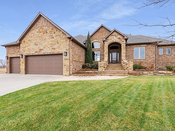 Stunning all brick estate situated on half an acre with breathtaking panoramic golf course views from almost every window and complete with a great open floor plan for easy entertaining, beautiful hardwood floors, wired for security system, lovely living that welcomes each guest and features a gas fireplace with tile surround, two built-in bookcases to showcase your favorite art pieces, and coffered ceiling with recessed lighting, formal and informal dining areas, and gorgeous granite kitchen with oversized island with breakfast bar, cushion close drawers and cabinets, under and over cabinet lighting, an abundance of counter and cabinet space, and walk-in pantry. Spend peaceful nights in this spacious master suite complete with two-way gas fireplace, large windows to bring in the natural light, recessed lighting, ceiling fan, room darkening shades, and sitting room to enjoy your morning cup of coffee. The spa-like master bathroom features heated tile flooring, under cabinet night lighting, air bubble soaker tub, tile shower with dual shower heads and built-in bench, double vanities, and two large walk-in closets with built-in dressers and three level of hanging rods. Working from home will be a pleasure in this home office with amazing views, floor to ceiling bookcases, and French doors to the covered deck for when you need a break! Entertain with ease in this sensational finished basement complete with a gas fireplace with tile surround, large viewout windows, recessed lighting, neutral decor to go with any decorating idea you may have, French doors to the covered patio, Quartz wet bar with beverage fridge, and enough space for your favorite game table. This lower level also features three bedrooms, two full bathrooms, storm room, and bonus room that would make the perfect hobby/craft room, exercise room, or media room...just imagine all the possibilities! Outdoor entertaining will be a pleasure with these three outdoor living spaces including a covered deck, covered patio, and stone patio with built-in cooking station. This outdoor oasis also features wrought-iron fencing, sprinkler system, and fabulous views! Welcome Home!