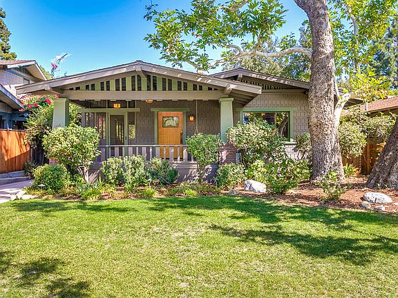 This picturesque Craftsman bungalow, a style treasured for its artistry and functionality, sits on a tree-lined street in the highly desirable Marengo area. Built in 1914, this home welcomes its visitors with a large front porch and screened side porch beneath the overhanging eaves. Handsome Craftsman details include original hardwood floors, crown molding, wainscoting, glass front built-ins, and restored pocket windows. The original quarter-sawn oak front door ushers guests into the great room, accented with a built-in bench, a brick fireplace with wood mantel, and architectural pillars. The stunning dining room features wainscoting, a built-in hutch with original glass front cabinets, custom chandelier, and French doors leading to the screened side porch. The updated kitchen with Shaker-style cabinets leads to a mudroom and 1/2 bathroom. A spacious master bedroom with remodeled en-suite bathroom and walk-in closet looks out to the professionally landscaped backyard and brick patio through restored pocket windows. There are two additional bedrooms. The full bathroom has been beautifully remodeled to match the character of the house. The laundry room located in the generous-sized California basement completes the layout. Other features include copper plumbing, updated electrical, central heating and air, a gated back yard, and detached 2-car garage. Located close to Garfield Park, Mission Street shops & restaurants, Farmer's Market, & Mission/Meridian gold line station. Easy access to downtown L.A., Old Town Pasadena, 110, 210/134 & 710 freeways. Steps away from Marengo Elementary School.