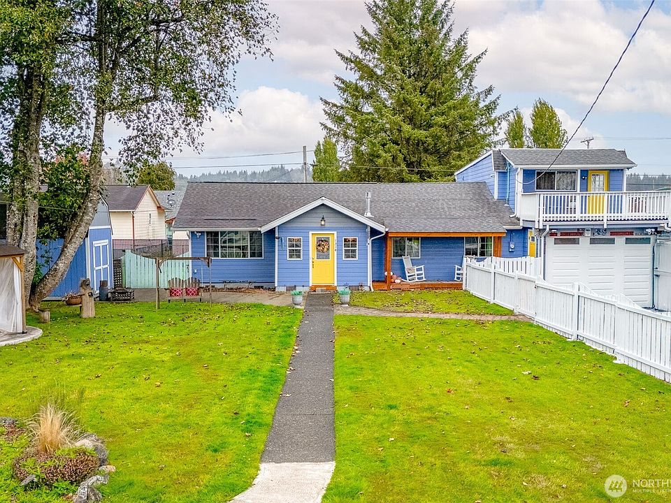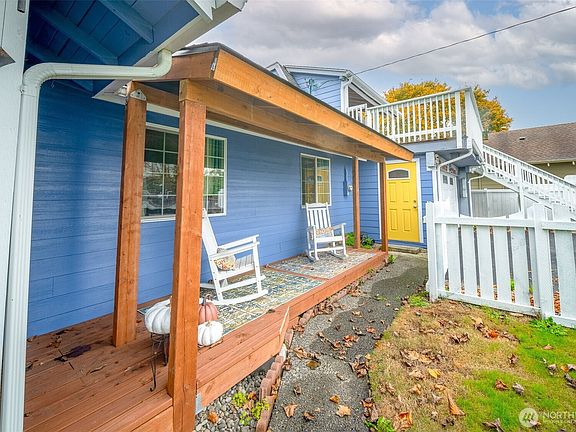 Charming 1916 duplex remodeled from the studs out, offering modern comfort w/ timeless character. The main 1,328 +/- sq ft owner occupied home features two spacious primary bedrooms, including one w/ a beautifully tiled European-style shower/tub combo. Highlights include updated kitchen w/ gas stove, freestanding gas stove for cozy heat, laminate & ceramic tile flooring, and thoughtful upgrades like fire-retardant 5/8” greenboard. The second unit, a 500 sq ft apartment above the garage with an expansive trex decking, includes its own kitchen and laundry—perfect for guests or rental income (currently rented to traveling nurses at $1,500 per month). Rare opportunity for versatile living or investment! All expenses shown are for both units.