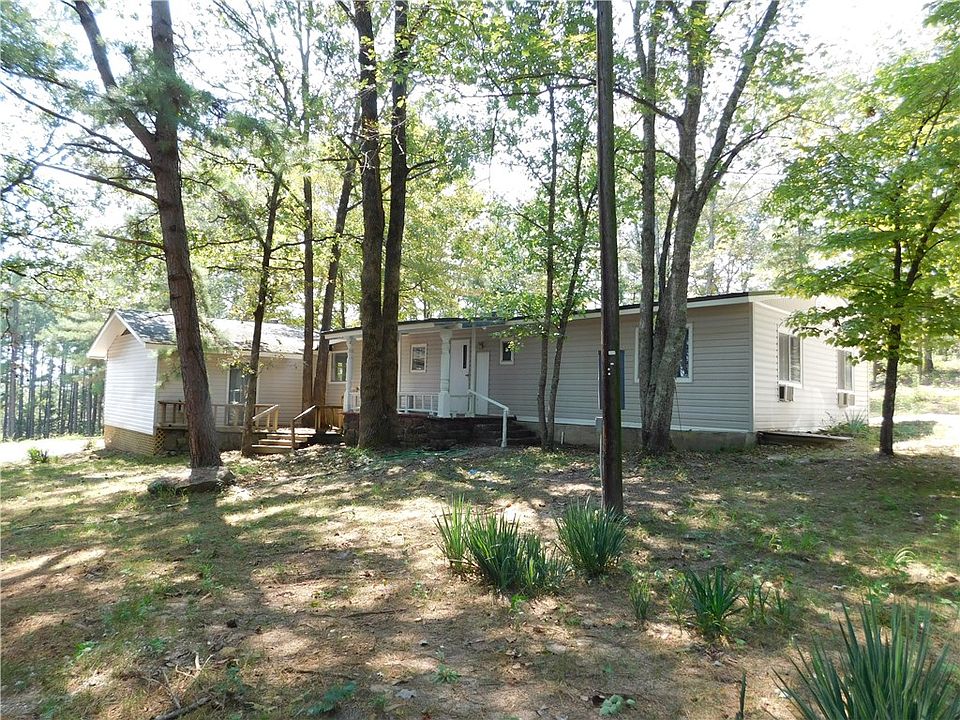 Very nice older double wide modular on permanent foundation with large 22x10 added-on den, all new paint, light fixtures, flooring. Large trees, blacktop road. 2 miles from Elkins. Large decks, quiet area. 6 acres
