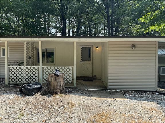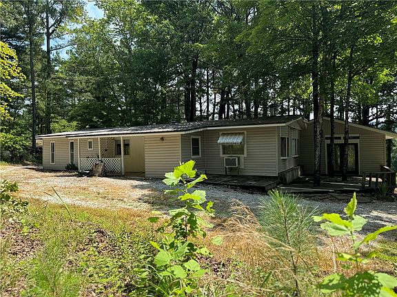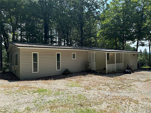 Mobile home on six acres with 12 additional acres available (see listing 1280938). Two living spaces provide additional opportunity for the family to enjoy their shows and hobbies when they like. Harvest your own timber for the wood-burning stove and expand the beautiful views to the south. There are two heaters, but only one is operable. The other was replaced in 2020 and does a good job of heating the whole residence. Propane water heater replaced in 2020. One bathroom remodel was started, but needs to be finished by the new owner. Catch fish from your pond and enjoy the abundant wildlife on your personal reserve. Secluded yet just minutes from groceries, restaurants, fuel, banking, etc. 25 minutes to Fayetteville. Property sold as-is with no repairs or improvements.