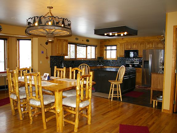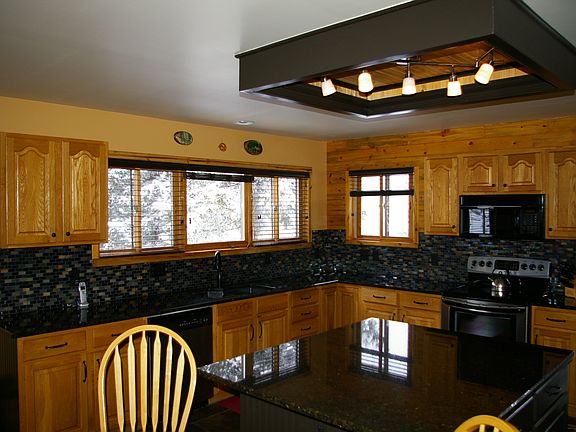 THIS IS COLORADO LIVING! Top of the Mountain! Immaculate, main floor laundry room could be 5th bedroom, some radiant heated floors, updated gourmet kitchen with granite counters, island, all appliances & walk-in pantry, large formal dining room with bay window, new interior paint, hot tub, slate and hardwood floors, wood stove in massive great room, wrap around decks with stunning mountain views, patio, garage could be a 3 car, ample storage, Culligan Water Softener, on 4.1 acres, incredible extras. Kellin Responder on Roof gives Free Internet and Phone.