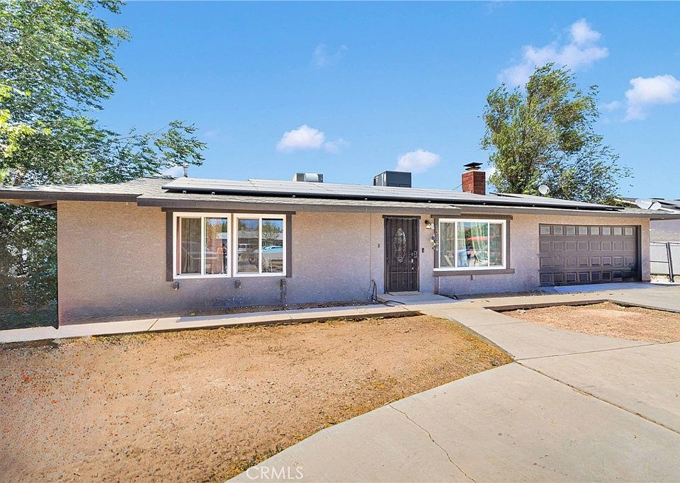 Newly remodeled primary bathroom!!! Welcome to this delightful 4-bedroom, 2 and a half bathroom home nestled in the city of Apple Valley, CA. Situated on a spacious 0.5-acre lot, this property offers 1,440 sq ft of living space. Step inside to a warm and inviting living room featuring a cozy fireplace. The open layout flows seamlessly into the kitchen, which boasts wood countertops, stainless steel appliances, and ample cabinet space. The primary bedroom has a stylish barn door, a closet, access to the backyard, and is spacious. Down the hall, you'll find three additional well-sized bedrooms and a full bathroom, offering comfort and flexibility for family members, guests, or a home office. This home is equipped with a whole-house water filtration system and solar panels—an excellent bonus for eco-conscious living and long-term savings! Outside, the expansive backyard provides endless possibilities with its 0.5-acre lot, a storage shed, and plenty of room for entertaining, gardening, or future additions like a pool or workshop. Conveniently located near schools, shopping centers, restaurants, and major roadways, this property combines charm, comfort, and practicality!