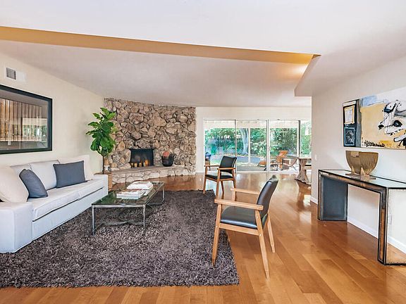 Fantastic Traditional in highly sought-after Hidden Woods neighborhood located on quiet tree-lined street. Formal double door entry leads to spacious living room featuring recessed lighting, HDWD floors throughout, magnificent stone fireplace & glass wall of sliders for easy indoor/outdoor flow. LR opens to dining area and wraps around to updated kitchen with stainless steel appliances, granite counters, custom cabinets, travertine floors & breakfast area for your morning coffee. Dedicated laundry/mud room with additional cabinets for storage. Den/Media room w/built in speakers & access to 3rd full bath could be converted to 5th bedroom. Front bedroom w/full closet & large second bedroom w/custom designed built-in bookshelves share updated hallway bath with tub/shower combo & dual sinks. Spacious master features walk-in closet, sliders to backyard & updated master bath w/dual sinks & full sized shower. Fourth bedroom has direct access to 3rd bath perfect for office & overnight guests. Additional features include pocket doors, dual pane windows, direct access to 2 car garage & private backyard w/mature foliage & large covered patio for your weekend entertaining. Close proximity to highly rated schools, shops, restaurants & easy freeway access. Peaceful suburban living in the middle of the city!
