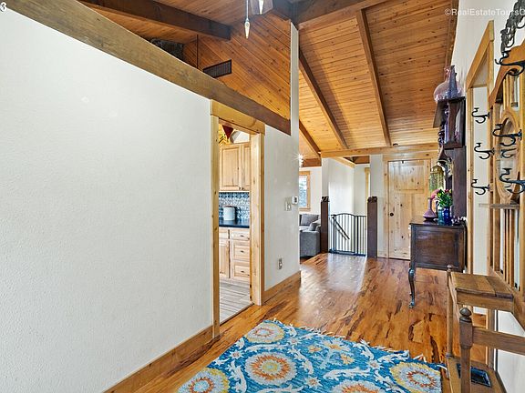 Stunning custom Chalet on nearly 5 acres! Vaulted, beamed cedar lined ceilings, open great room floorplan, wall of windows. Huge 40x60 shop! Completely separate living area downstairs. Primary w/ dbl closets, updated bath, slider to private deck. Gorgeous hickory woodwork. Updated vinyl windows, paint, bathrooms, carpet and more. Remodeled kitchen w/ new counters, cabinets, appliances & more. Lower level perfect to rent or multi-generational living. Greenhouse, spa, shop, gym, media room & more!