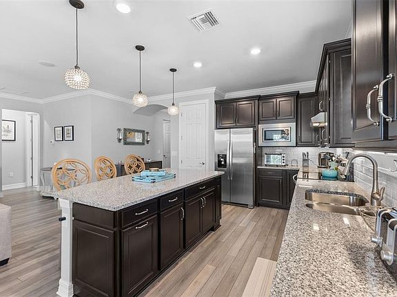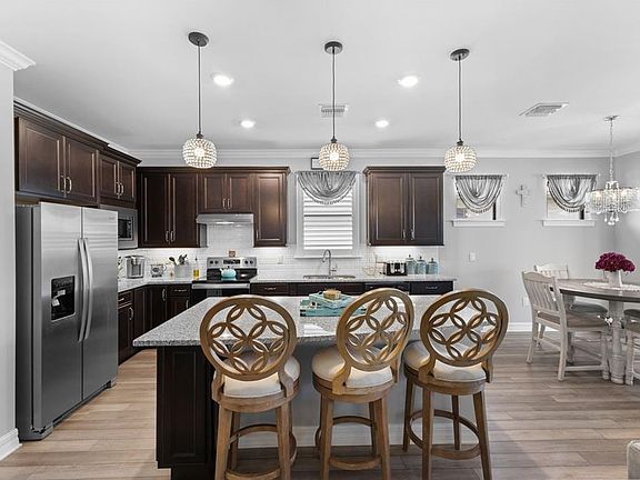 Oversized islandGranite countersLarge laundry roomTall ceilingsCeiling fansLakefront homeGourmet kitchen