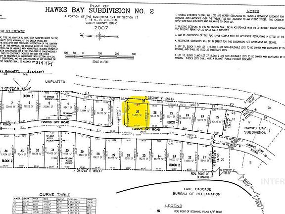Amazing Corner lot w/NO Neighbors on 3 sides. Hawks Bay is growing each year with luxury homes popping up. Enjoy the peaceful location in the mist of 360 views in this mountain setting. Just minutes from Tamarack Ski Resort and Lake Cascade w/Deeded access to Lake Cascade's non-motorized portion -paddle board, kayaking, and/or fishing. Across the street is a HUGE walking trail perfect for a morning jog or walking a pet enjoying the crisp mountain air surrounded by beautiful nature all around you. Half way between McCall and Cascade is a perfect spot for a "get away" or your "forever home". Location is minutes from skiing, boating, hiking, shopping, dining, entertainment, and some of the best recreation Idaho offers. This lot is ready with Power, water, sewer in the subdivision! You'' find 3 fully mature trees on this lot to help you grow your landscaping plans.