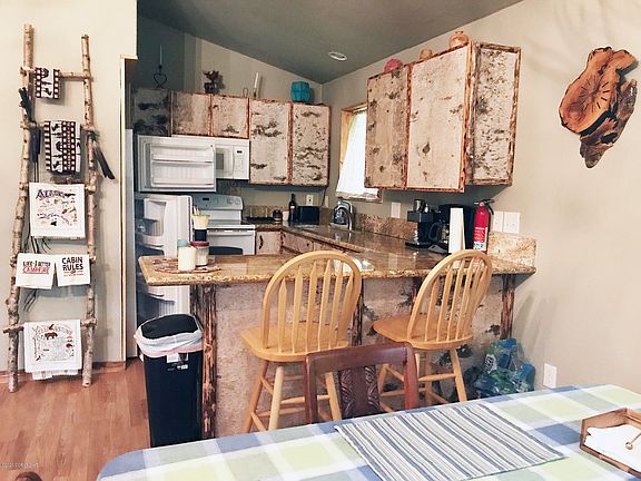This place is AMAZING! Sweet log cabin in the woods on 2 acres of private paradise. Has everything you'd need to live full time or a weekend getaway. Built with a rustic, Alaskan motif both inside and out, it offers 1BR/1BA, well, septic, electric, end-of-the-road privacy, 2 large sheds for storage, a new woodstove, beautiful burl logs and birch bark cabinets. It's the perfect Alaskan homestead!