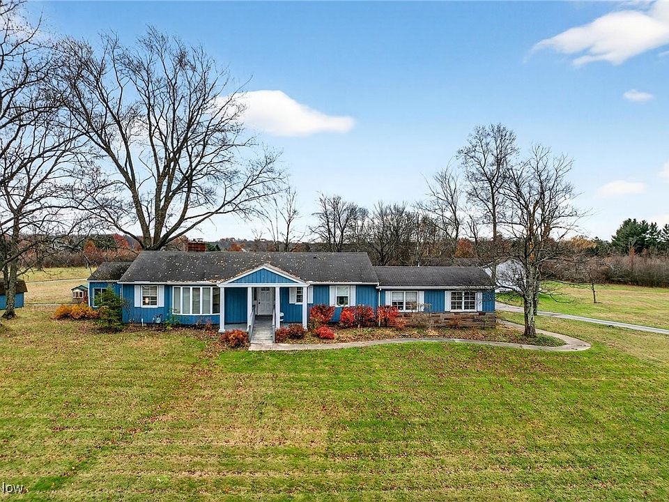Welcome home to this sprawling 5 acre ranch in Chardon, Hambden Twp. This multigenerational home offers a convenient in law suite layout, totaling 6 bedrooms and 3 full baths. A large 4 bay outbuilding/garage offers much potential for car enthusiasts, landscaping equipment, workshop and more. A wood ramp leads to a new front door. Living room is large with an original 50's Stone wall fireplace surround, bay window, and neutral colors. Bright sun room and dining area lead to the kitchen. The main living area has 4 bedrooms and 2 updated full baths. The in law area has a living room, a kitchenette, 2 bedrooms, and a full bath with walk in shower. Also has its own entrance, in addition to access to the main living area. A full basement houses the laundry area, much storage and room for recreation or crafts. Outside is a nice patio overlooking the expansive backyard. A shed, and play set stay. Recent mechanical updates Furnace 2024, Driveway 2021, A/C 2020, Septic pump, Pressure Tank. Enjoy the charm of Historic Chardon Square with its Gazebo, shops, restaurants, and cafes. Many events held at the square including Geauga County Maple Festival. Hike or bike the 20+ mile paved Maple Highlands Trail. Located about 35miles east of Cleveland. Rural living convenient location. Opportunity is knocking, are you ready to answer?