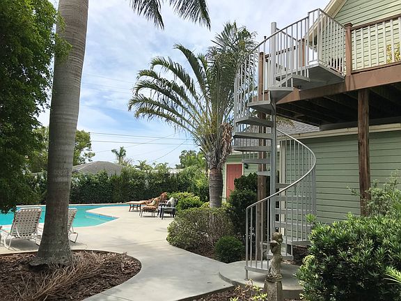 Enjoy your personal Oasis. Charming vintage home in Village of the Arts District of Bradenton Florida. Live/Work zoning allows, art galleries, retail shops, restaurants, or Bed & Breakfast combined with residential living. Come see this two story, 4 bedroom, 3.5 Bathroom, 3 gas fireplaces, custom kitchen, 6 zone HVAC for individual comfort, huge resort pool with lap lane. Old Florida Screen front porch, rear screened porch and second floor deck with inside access and spiral staircase to deck/pool area. Since 2008 - new electric 200 AMP service and wiring, new plumbing waste and supply lines, PVC fencing, Roof, hurricane impact windows and doors and HVAC system.Home sold furnished (few items excluded)