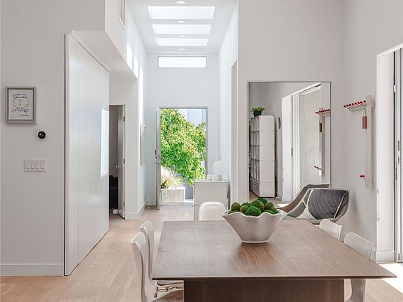 Inside, the open-concept great room impresses with soaring 12-foot ceilings, five sun-filled skylights, and two sets of pocket doors that disappear to create seamless indoor/outdoor living. The tropical-inspired backyard is an entertainer’s dream, complete with a saltwater pool and spa, generous lounge areas, and three separate patios—allowing each bedroom its own private outdoor retreat.