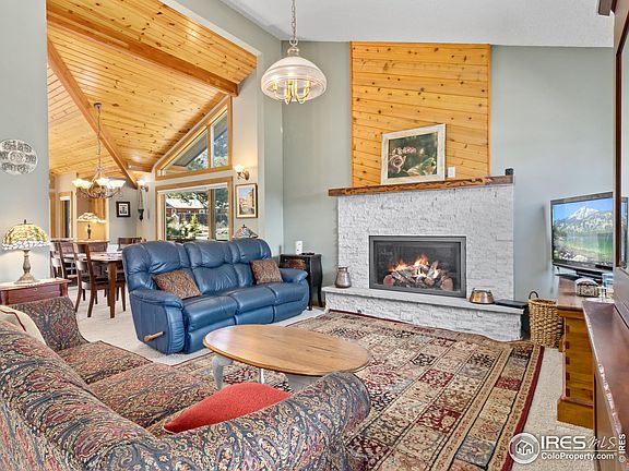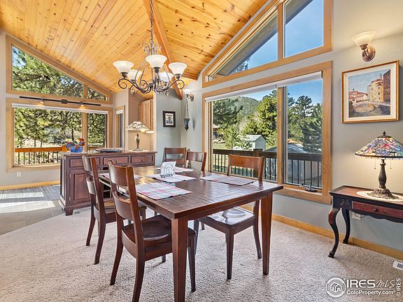 Welcome Home to the Mountains and this lovely ranch style home with lots of updates (including new appliances, interior paint, furnace/AC, fireplace, primary bath, solar panels) located in a nice neighborhood in West Estes Park just a mile from Rocky Mountain National Park. Situated on half an acre, the views are awe-inspiring. This home has an inviting, sun-soaked, open concept living, kitchen and dining area. Enter & take in the dramatic cathedral ceilings & the flood of sunlight throughout the entire space. Cozy up in front of the new fireplace, updated with an efficient gas insert & beautiful stone hearth. The kitchen is perfectly situated with copious storage & counter space. It has everything you need for entertaining large groups & daily meal times. Enjoy creating meals while still staying a part of the conversation, watching the game, or just taking in the views. The spacious yard is perfect for all of your outdoor needs, including an adorable shed/clubhouse/artist's nook, with electricity. Use it for storage or for your latest artistic endeavor! Two car attached garage has plenty of space for your vehicles & toys. From the garage enter into the large bonus/multipurpose room that has enough space for the laundry, workbench/craft table or use it for extra storage. Retreat into your large, private primary suite with a beautiful brand new bathroom! New furnace & AC unit, and there are solar PV panels on the roof to help keep your electric bill low!. Enjoy the short walk or bike ride to the restaurants and cafes of West Estes or drive 5 minutes to the fun filled local Estes Park main drag! Hiking, fly fishing, wildlife photography in The Park is minutes away.