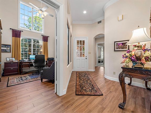 Elegance and sophistication define this stunning 2 bedroom, 2.5 bath with study home! Designer features include wood like tile flooring throughout, carpet in the bedrooms, built-ins, soaring ceilings in the study, granite counters, crown molding plus unique angles and rounded corners. The kitchen is the heart of the home and offers a large island with seating as well as an abundance of cabinet and counter space! Nestled on a cul-de-sac lot in the gated Kingwood community. Enjoy an active lifestyle with the community pool, tennis courts and golf course! Home is located near the clubhouse. Window treatments, washer & dryer, refrigerator all convey.