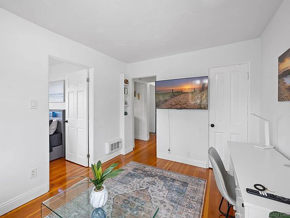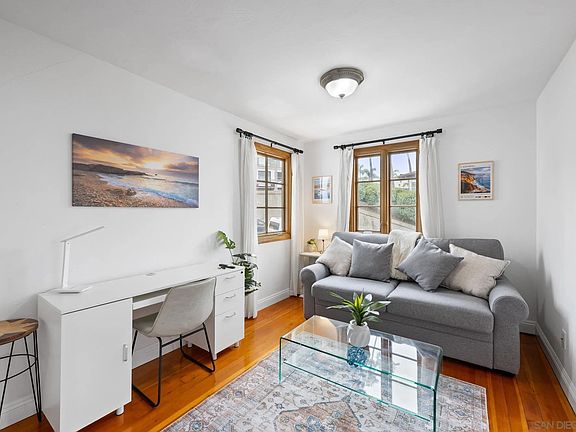 Monthly/weekly furnished rental! This is a Charming and unique one bedroom apt in a 5-unit building in La Jolla with access to the Village & Cove right out your front door! Everything you need for 1 or 2 people - comfortable bed, desk, TV, couch, hardwood floors, kitchen, clean and functional bathroom with windows everywhere to take in that ocean breeze. Walk to La Jolla Village shops, restaurants and galleries. Explore the Cove, nearby trails and Children's pool, just a short walk away. This is a unique and historic property with lots of charm! You will climb 2 small sets of stairs to reach the lower-level unit. The entrance is at the side of the property, you'll enter through a gate and walk up some stairs to reach the front door. The apt has a small living room with a couch, TV, desk and coffee table. The bedroom has a queen-size bed with windows facing the street and ocean. The kitchen and bathroom and both clean and functional with all the basics you need. At the end of the hall is the entrance to the cellar which has a coin operated washer and dryer. There is currently no parking spot available, but there is limited street parking as well as a parking garage across the street from the property. Everything is cozy and comfortable; you should have everything you need to relax and enjoy your stay after a long day exploring the village and cove.