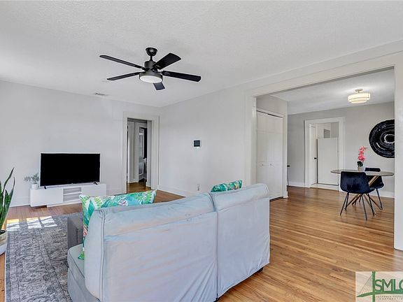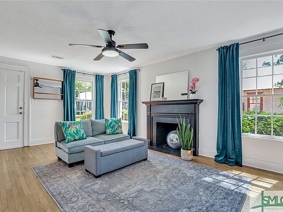 Charming 3BR/2BA 1440Sqft Pink Bungalow in Live Oak near Historic Districts in Savannah! Circa 1947, this solid Cinderblock home is just 7 Blocks to Thomas Square Streetcar District. Beautiful blooming Azaelas add curb appeal across front of the home. Stunning Original Hardwood Floors. Open Living Room has Plenty of Natural Light & Wood Burning Brick Fireplace. Separate Dining Area. Big All White Kitchen w/Pantry +Access to Backyard! 3 Large Bedrooms w/Generous Closet Space. Lots of Storage in Home. Laundry Closet w/Washer & Dryer Hookups. Brand New Privacy Fence encloses Large Backyard with Brick Patio off of Kitchen excellent for entertaining. Multiple Gate Entrances into Backyard. Newly Updated Main Bathroom with White Subway Tile Shower. Primary Bedroom with Ensuite Full Bathroom & Nook for Desk Space. Separate Garage perfect for Artist Studio Workspace, Workshop & Storage. Just Steps to Grayson Stadium. 5 min drive to SCAD, Whole Foods, Target, Home Depot, Orange Theory, and more!