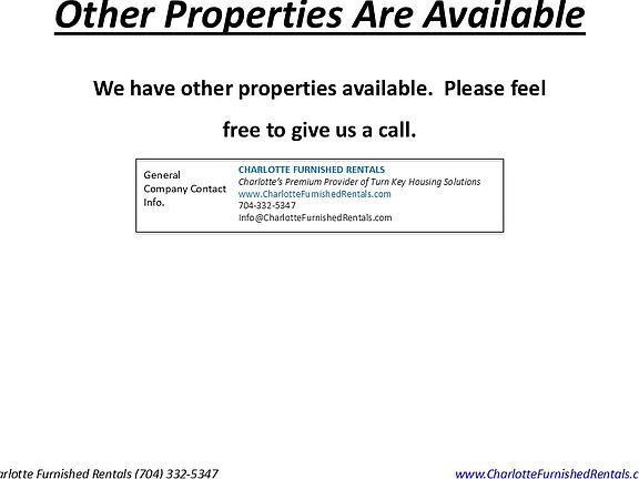 For more information feel free to contact us online at Charlotte Furnished Rentals.