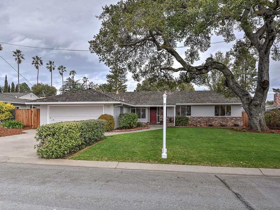 A majestic Oak Tree welcomes you to a beautiful single-story ranch style home with 3 bedrooms and 2 bathrooms. Located on a highly sought-after street, the home boasts 1,603+/- square feet situated on a 10,000+/- square foot lot. Enjoy the tranquil and private rear grounds with beautiful roses, fruit trees, an expansive lawn area, and a brick patio for entertaining. Gleaming, original hardwood floors throughout most of the home. Spacious living room with formal dining area and a fireplace. Convenient to fantastic schools: Oak Elementary, Blach Middle, and Mountain View High. Open house Saturday, 3/30 and Sunday 3/31 from 1:30 - 4:30pm.