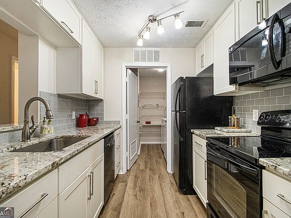 This move-in ready gem in sought-after Tuxworth Springs offers the best of everything: TOP UNIT with vaulted ceilings; the prettiest LOCATION, tucked away in the wooded back of this unique, gated complex; the best CONDITON, with updated kitchen, baths and lighting; ENERGY-EFFICIENT double-pane windows & patio doors; plus new paint and flooring throughout. The perfect roommate plan, this spacious 2/2 features a spacious bedroom, bathroom and walk-in closet on each side of the living and dining area. The renovated kitchen was designed by and for the homeowner, which means high-quality cabinets with extra drawers, storage over the sink, and pull-out shelving. The laundry / utility room also boasts tons of space for pantry and storage. Just off the living room, enjoy your own deck for dining al fresco, and another large storage closet. Tuxworth Springs is a beautifully-designed and well-managed community - it's even FHA Approved. This sprawling, gated neighborhood near the heart of Decatur offers security, comfort, ample parking in front of your building and great amenities (pool, tennis and dog walk); all in a rare, natural wooded setting, just minutes from Emory, CDC and the City of Decatur. Tuxworth residents have easy access to a plethora of restaurants and retail just across the street and up and down Scott Blvd., as well as public transport, The PATH bike & hike trails, and ATL's favorite destinations. You will LOVE living here.