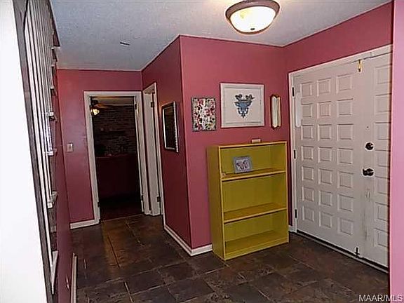This home just keeps going & going...so much room for the family. The foyer brings you inside from the covered porch and into the middle of the first floor. To the left is an office with built in cabinets and across the hall is an extra room, no closet, but could easily be used as a 5th bedroom if needed. To the right is first a half bath just outside of the living room, with masonry fire place and a wall to wall brick hearth. Around the corner is the separate dining room with beautiful brick accent wall. The kitchen is just past this and has granite tile counters, updated backsplash and a stainless stove and refrigerator. Lots of storage in here for pots and pans and such! Attached to the kitchen is a breakfast area with french doors leading out back. Just through the other doorway is an oversized laundry room complete with washer and dryer as well as another half bath. To the right is a huge bonus room, perfect for a game or media room. Up the stairs from the foyer you will find 4 bedrooms and 2 full baths. The flooring is all laminate so no lugging the vacuum up the stairs. The main bedroom has a private attached bath and 2 closets. The other 3 bedrooms share the hall bath and these bedrooms are partially furnished with beds if needed. The back yard area has a concrete patio, a detached deck space and a storage closet with water supply to make cleaning up after outside play easy.