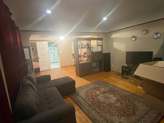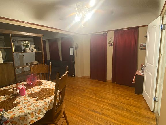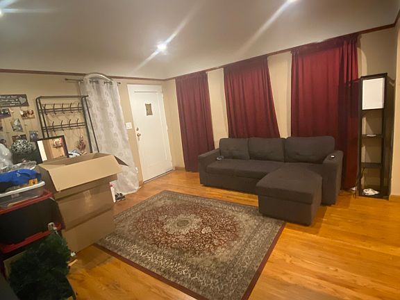 This property is a duplex. The side being rented is on the left. It has a spacious open living/dining room when you first enter. Large kitchen with cabinets that offer lots of storage space. Stove and fridge are included. In the kitchen there is a laundry room. Washing machine is included but no dryer. There is also a side door located in the laundry room. Down the hall first door to the left there is the small bedroom with a closet. Last door to the left in the hall is the bathroom that has both a shower and a bathtub and built in drawers and cabinets for toiletries. At the end of the hall is the large bedroom with a large closet. Queen bed frame and matching night stands are included if you'd like. Central air and heating. Keep in mind tenants are still in the process of packing and moving out so most of what you see in the pictures will be gone by the end of the month.