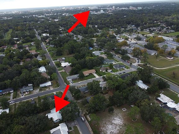 Discover this charming 4-bedroom, 2-bathroom home perfectly located in beautiful Gainesville, FL! This spacious residence offers a comfortable mix of tile, vinyl plank, terrazzo, and carpet flooring—making cleaning and maintenance a breeze. The split-bedroom floor plan ensures plenty of privacy for the primary suite, while the dedicated dining room and separate living room provide an ideal setup for family gatherings and entertaining guests. The large kitchen is a chef’s dream, offering ample space for cooking and meal prep. Sitting on nearly half an acre, this property provides plenty of room to relax, play, and entertain outdoors. Conveniently located less than 10 minutes from UF and Shands, and just a short walk from both the local elementary and middle schools, this home combines space, comfort, and unbeatable convenience. In the drone shots, you can see the arrows that show how close UF and Paynes Prairie is to this property. The drone shot with the arrow and circle show how close the public schools are. Don’t miss your chance to make this Gainesville gem your new home—call today to schedule your private tour!
