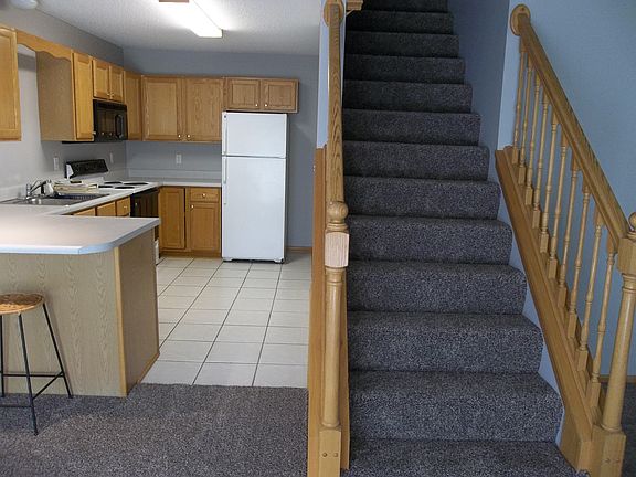 This two-bedroom, one-and-a-half-bath condo on the southeast side of Ankeny has had lots of updates. Not only does it have new paint throughout, but the floors have been redone, and there are new bathroom fixtures. The condo has an open floor plan with a loft upstairs and easy access to the interstate, and shopping is just down the street. One of the best features is that it is located right next to the green belt area on a culdesac. The sliding door opens to a patio that opens to a nice green lawn right next to shaded trees. It makes the place feel more like a house than a condo. The garage opens to the end of the culdesac and is attached to the condo for easy access. No smoking is allowed. No pets allowed. Snow removal and grass mowing are included. The renter does not pay condo association dues. The renter is responsible for trash, water, gas, and electricity. Parking is in the garage and the driveway. Trash cans need to be put away on the day of collection. Rent is due the first day of every month. There is a penalty for late rent.