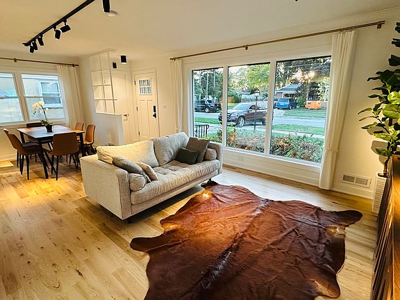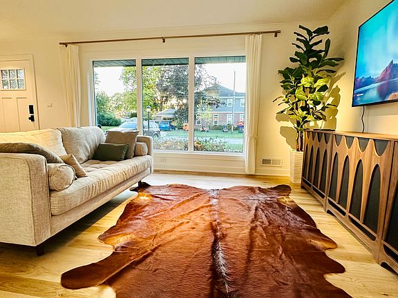 Newly renovated, fully furnished 3 bedroom one bathroom house with two floors oversize garage. 5 min to ohare. full basement with bar and playroom. washer dryer. electric car charger.