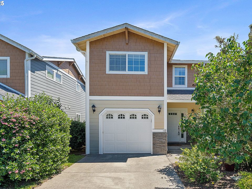 Nestled inside the gated Hilltop Estates, this spacious three-story townhouse combines coastal comfort with panoramic views of Nehalem. The main level welcomes you with vaulted ceilings, abundant natural light, and a balcony perfect for morning coffee or evening gatherings. Upstairs, the primary suite features its own vaulted ceilings, a private bath, and a flexible loft area that works beautifully as an office or cozy reading nook. Downstairs, you’ll find two additional bedrooms—one with private patio access—offering space and privacy for guests or family. Enjoy easy, low-maintenance living just minutes from downtown Nehalem, the river, and the beach. A rare opportunity in a serene, well-kept community! Unit #18