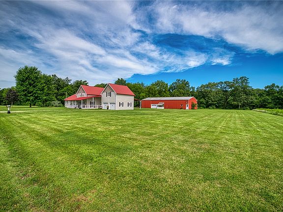 PRICE REDUCED, MOTIVATED SELLER! This one of a kind farmhouse home along with 5 acres of land to enjoy is a must see. The moment you walk in the front door it is breathtaking with the great room and its 26' cathedral ceiling of beautiful tongue and groove wood, advancing to gleaming hickory hardwood floors in the gourmet kitchen that is every persons dream with a huge walk around island, desk space, walk in pantry and more. Off the kitchen is a gorgeous dining room with a fireplace and a full wall of windows looking out to the massive 38x24 entertainment deck, back yard and woods to enjoy all seasons of the year. Leading up the hall you will find 2 more bedrooms, a full bath and the master suite wing with a huge master bath and walk in closet that is unbelievable. There is a concrete floored room leading to the basement that is great for an exercise space, animal kennel room, mudroom or more. The basement has been freshly painted along with almost every room in this home. New plumbing, new ceiling fans, some new light fixtures and so much more. The foyer from the other front door leads you into the bath/laundry, garage and kitchen door. Upstairs leading from the great room with a beautiful open staircase and landing are 2 more bedrooms set up as super kids rooms, a full bath, huge closets and a huge game room, family room and more. The awe factor of this home is even the outside entertainment porches and decks to enjoy. The pole barn is 3040 sq ft of storage for all those toys and more including hunting blinds in the upper level overlooking the woods for hunting seasons. Seller has just had a licensed hvac company install a brand new furnace and pump that is 95% efficient. Call today for a tour before it is gone, gone, gone. This home borders Marshall School and Marshall bus drives close by it. Buyer can file to Marshall Schools if desired. One would have to check with the school system